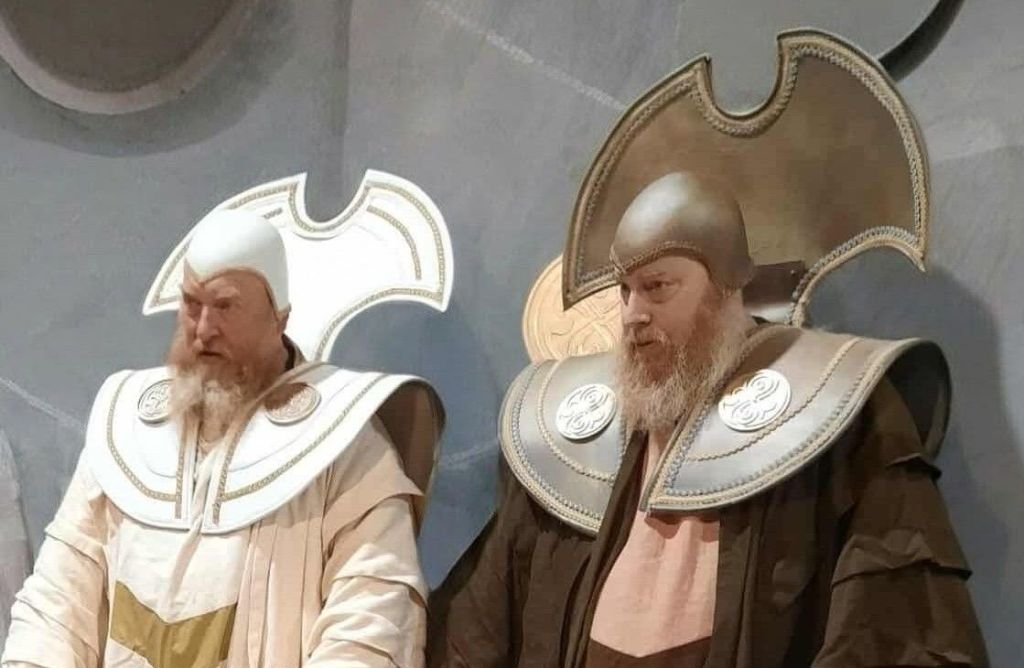 ABOVE – Pete Buzzsaw Holland playing The Lord President Of Gallifrey (in white) along side my brother Toby Jewell ( in brown) playing the Castellan for Johnny Who Entertainments film